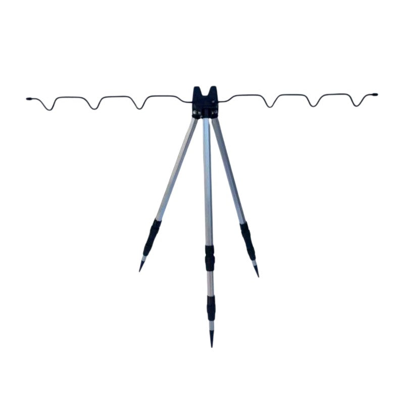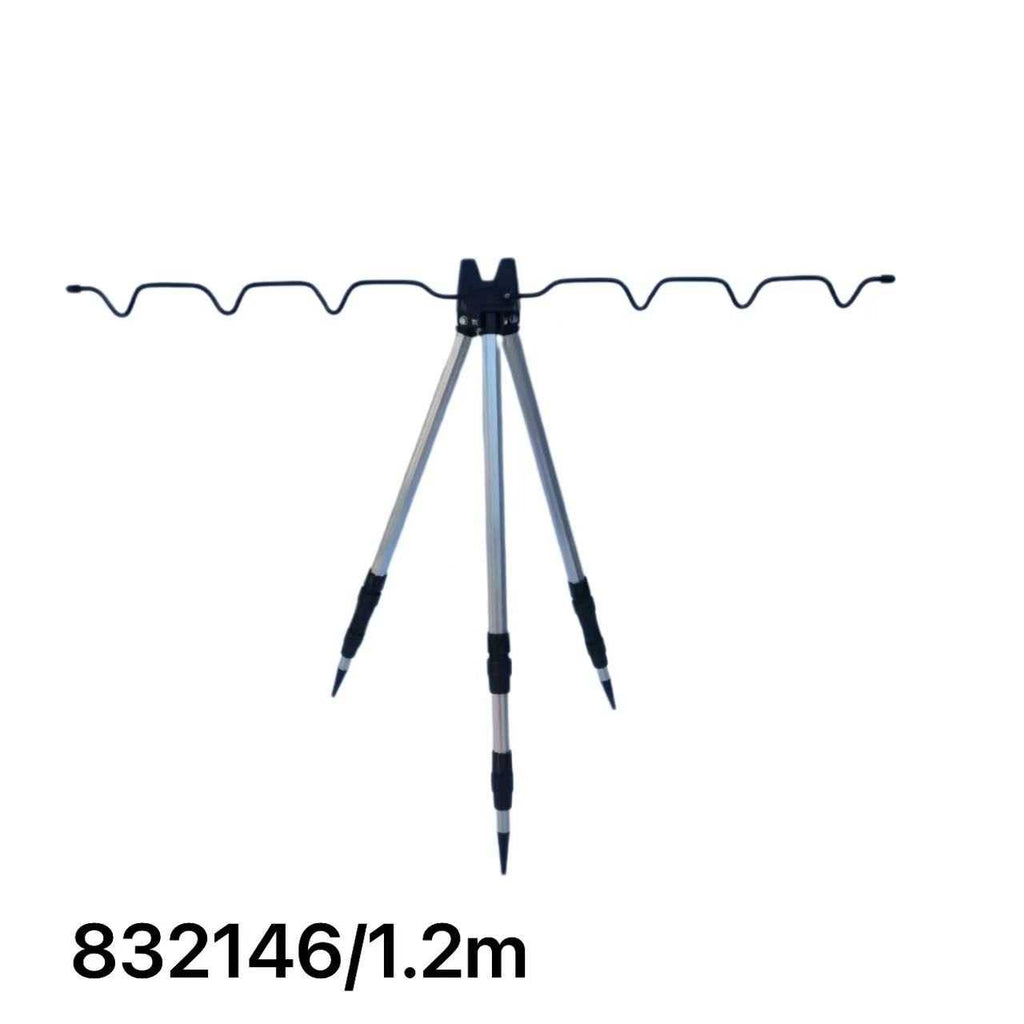 Βάση στήριξης καλαμιών πτυσσόμενη με τρίποδο. Στιβαρή κατασκευή αλουμινίου. Ύψος τριπόδου: 90cm. Μήκος βάσης καλαμιών: 1.2m.
