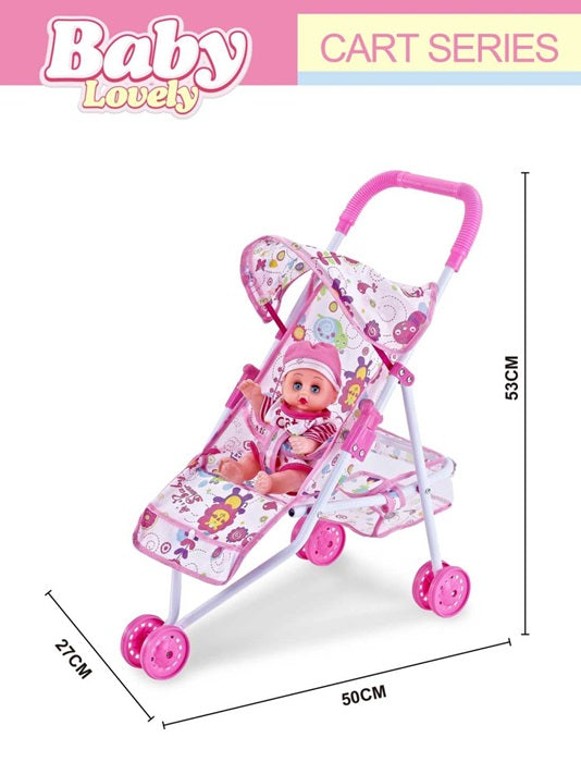Σετ παιδικό καροτσάκι μωρού με κούκλα και καλαθάκι, σε πανέμορφο ρεαλιστικό σχεδιασμό με πολλαπλές δυνατότητες, με υπέροχα χρώματα και με ανθεκτική κατασκευή για ατελείωτες βόλτες! Πτυσσόμενο για εύκολη μεταφορά και αποθήκευση.