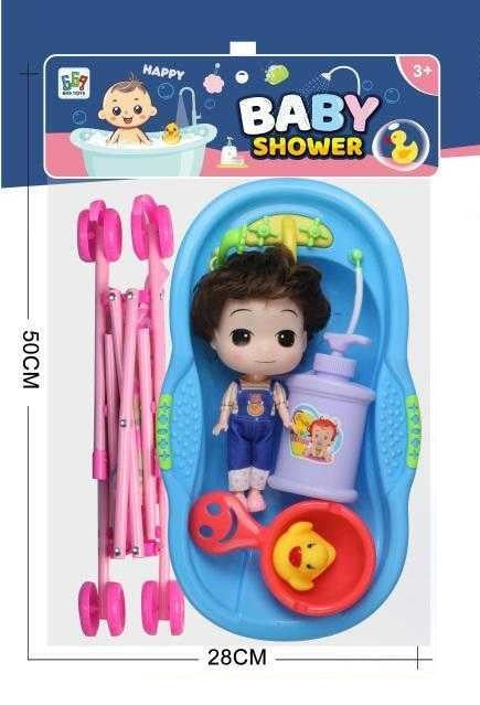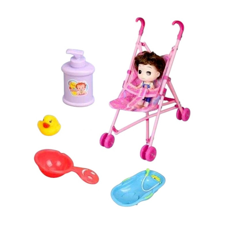 Σετ κούκλα με καροτσάκι βόλτας και πλήρες σετ μπάνιου με μπανιέρα και παιχνίδια, σε πανέμορφο πολύχρωμο σχεδιασμό με πολλαπλές δυνατότητες και με ανθεκτική κατασκευή για ατελείωτο παιχνίδι!