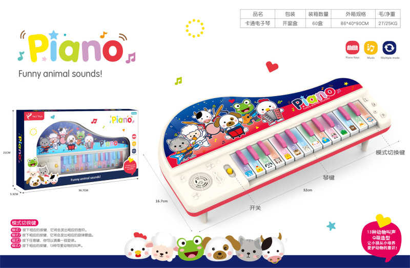 Παιδικό εκπαιδευτικό πιάνο, σε υπέροχο πολύχρωμο σχεδιασμό, με πολλαπλές λειτουργίες και εκπαιδευτικούς ήχους από ζωάκια, για τους μικρούς λάτρεις της μουσικής.