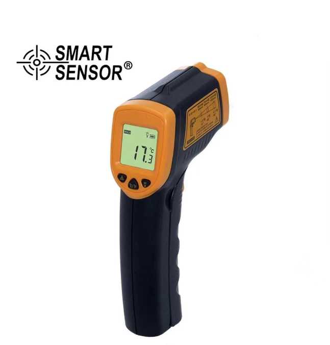 Ανέπαφό θερμόμετρο υπερύθρων χειρός με ψηφιακή φωτιζόμενη οθόνη ενδείξεων και εργονομικό ελαφρύ σχεδιασμό.
