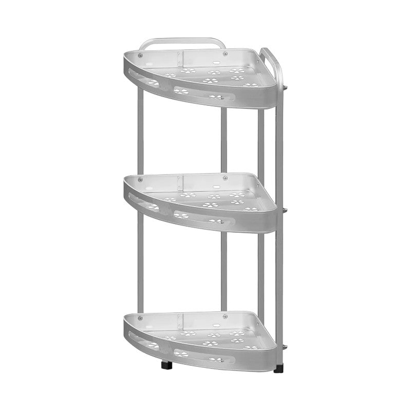 Ραφιέρα μπάνιου τριώροφη γωνιακή με μεταλλικό σκελετό και πρακτικό σχεδιασμό που μπορεί να τοποθετηθεί επιτοίχια ή σε επιφάνεια.