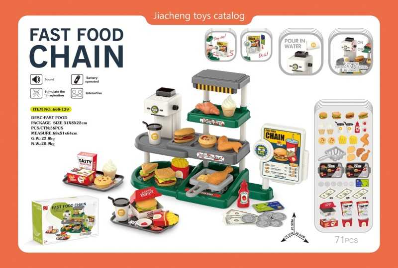 Παιχνίδι fast food με τριώροφο πάγκο και πλήρες σετ αξεσουάρ, σε υπέροχο ρεαλιστικό σχεδιασμό για ένα δημιουργικό παιχνίδι φαγητού με όλη την παρέα!