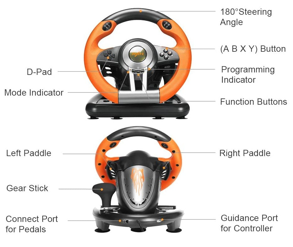 Σετ τιμονιέρα gaming PXN-V3PRO με μεγάλο τιμόνι και πετάλια ποδιών, με ελαστικό περίβλημα και ρεαλιστικό σχεδιασμό για να απολαμβάνεις το παιχνίδι σου οδηγώντας σαν επαγγελματίας, ιδανικό για τους λάτρεις των racing games.