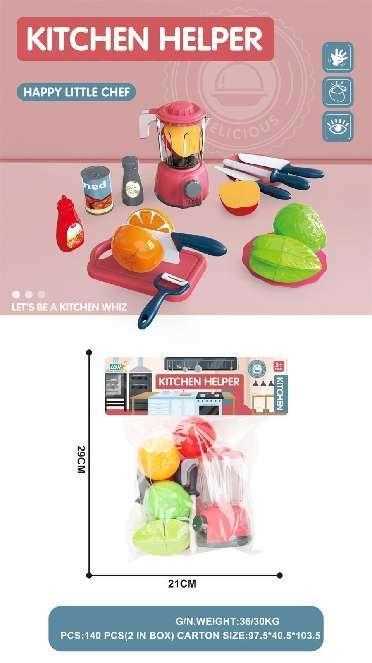 Παιδικό σετ κουζίνας με μπλέντερ, αξεσουάρ, σκεύη και τρόφιμα, σε υπέροχο πολύχρωμο σχεδιασμό.
