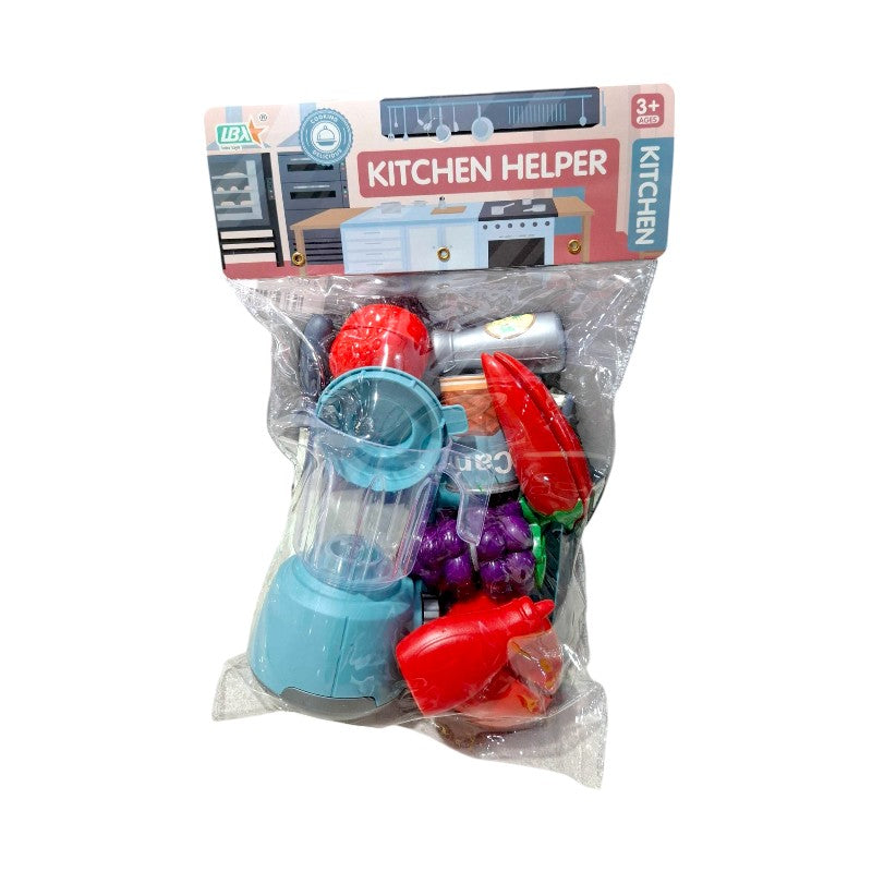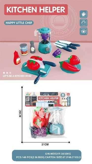 Παιδικό σετ κουζίνας με μπλέντερ, αξεσουάρ, σκεύη και τρόφιμα, σε υπέροχο πολύχρωμο σχεδιασμό.