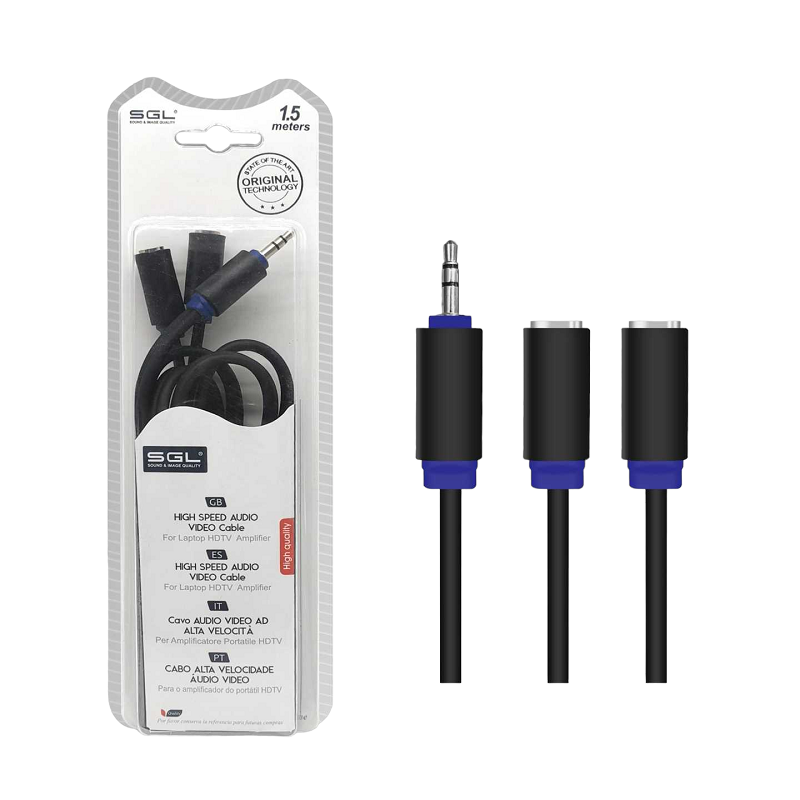 Καλώδιο ήχου Jack 3.5mm - A1528 - Male σε 2 x Female, με ενισχυμένο κάλυμμα προστασίας. Μήκος: 1.5m. Χρώμα: Μαύρο.