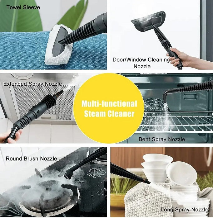 Διαθέτει επιπλέον 4 διαφορετικές κεφαλές καθαρισμού για χρήση σε κάθε είδους επιφάνεια όπως έπιπλα, ανοξείδωτα, πλακάκια, μπάνιο, παράθυρα κά.