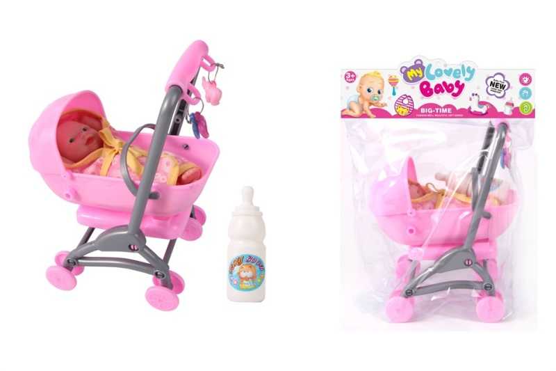 Μικρό πλαστικό καροτσάκι με κούκλα, σε υπέροχο mini σχεδιασμό, ιδιαίτερα ανθεκτικό για ατελείωτες βόλτες και παιχνίδι με την κούκλα σου.