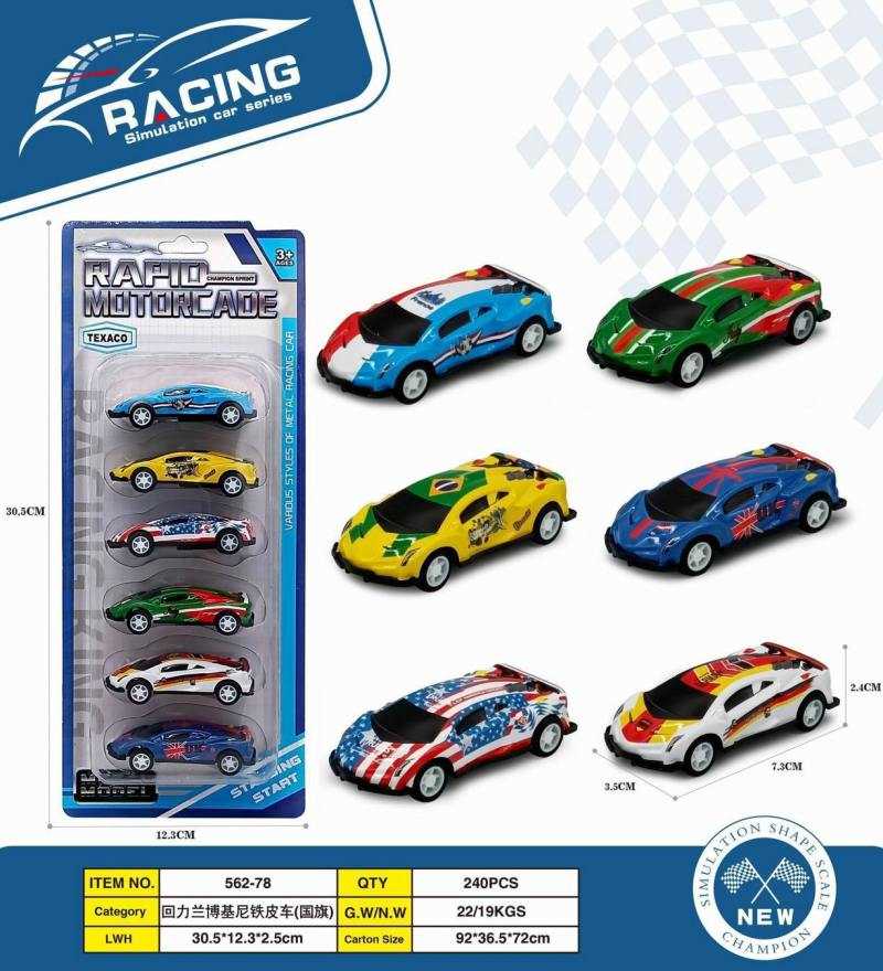 Μεταλλικά αυτοκινητάκια, σετ 6 τεμαχίων, σε διάφορα πολύχρωμα σχέδια και ποικιλία σχεδιασμού, με Pull Back.