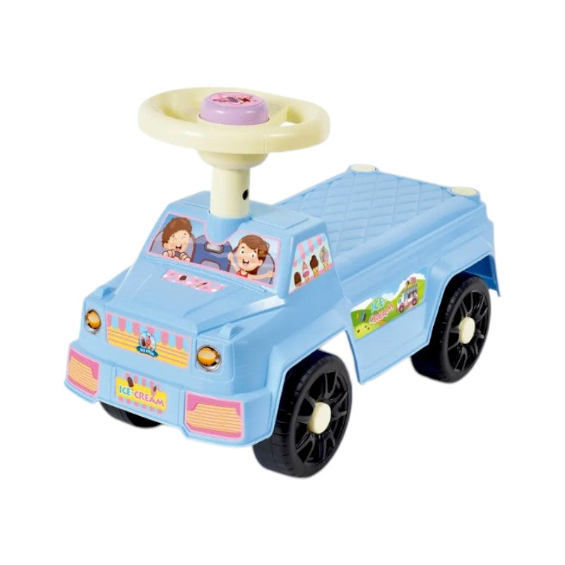 Αυτοκίνητο περπατούρα σε υπέροχο πολύχρωμο σχεδιασμό με πολύχρωμα σχέδια, με κόρνα στο τιμόνι και εργονομική σχεδίαση για εύκολη χρήση από το παιδί.