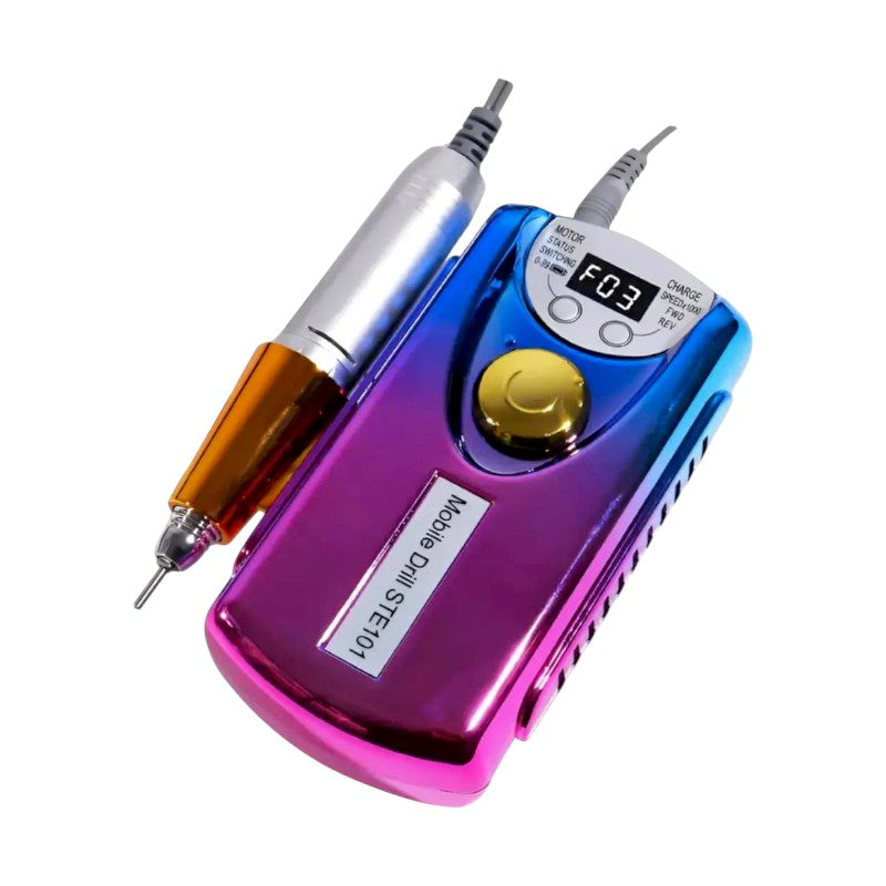 Επαγγελματικός, επαναφορτιζόμενος τροχός μανικιούρ-πεντικιούρ με βάση στήριξης. Διαθέτει ρυθμιζόμενη ταχύτητα, λειτουργία μειωμένου θορύβου και δονήσεων και εργονομικό σχεδιασμό για εύκολη και άνετη χρήση. Χαρακτηριστικά: Ισχύς: 20W Δεξιόστροφη και αριστερόστροφη λειτουργία, Ψηφιακή οθόνη ενδείξεων, Ρυθμιζόμενη ταχύτητα: 1000-30000rpm, Προστασία από υπερθέρμανση, Προστασία από αντίστροφη ενεργοποίηση (καθυστέρηση αλλαγής 2 sec), Αυτονομία μπαταρίας έως 2 ώρες, Περιλαμβάνει: 6 φρέζες και 6 τροχολιθάκια.