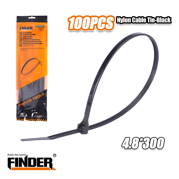 Σετ 100 τεμάχια δεματικά - Tie wraps, μεγέθους 4.8*300mm - Finder.