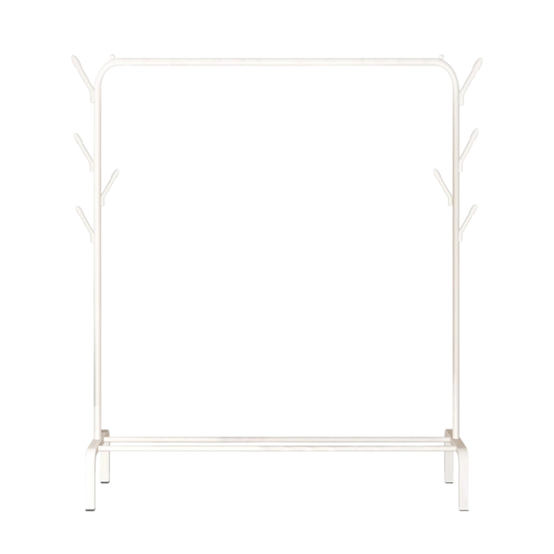 Kρεμάστρα δαπέδου μονή, μεταλλική, με ράφι παπουτσιών και πλαϊνές κρεμάστρες, ιδανική ως έπιπλο εισόδου ή για την οργάνωση των ρούχων στο δωμάτιό σας.