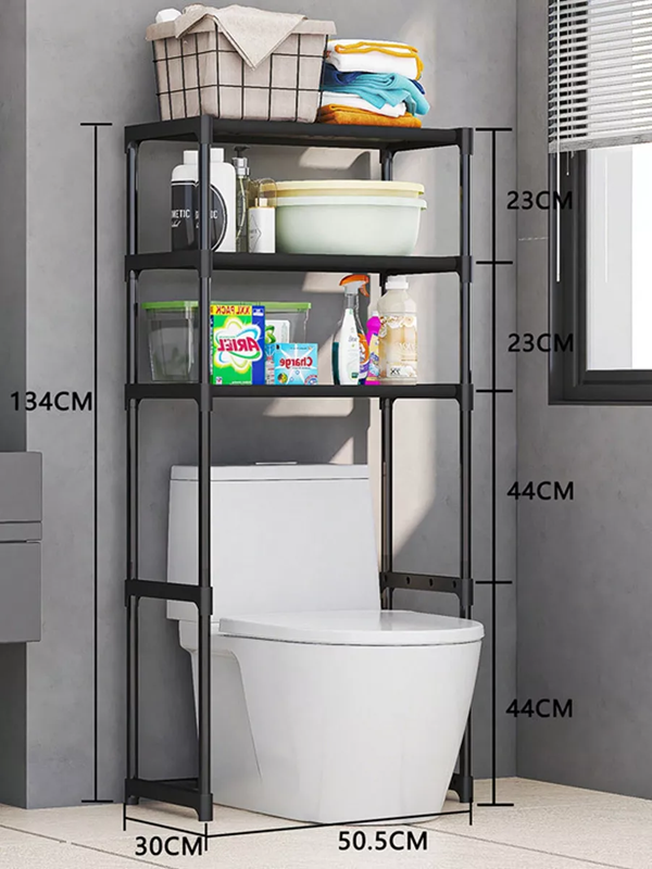Επιδαπέδια ραφιέρα μπάνιου μεταλλική, συναρμολογούμενη, με 3 πρακτικά ράφια, ιδανική για οργάνωση και εξοικονόμηση χώρου καθώς τοποθετείται επάνω από τη λεκάνη τουαλέτας. Διαστάσεις: 50 × 30 x 134cm.